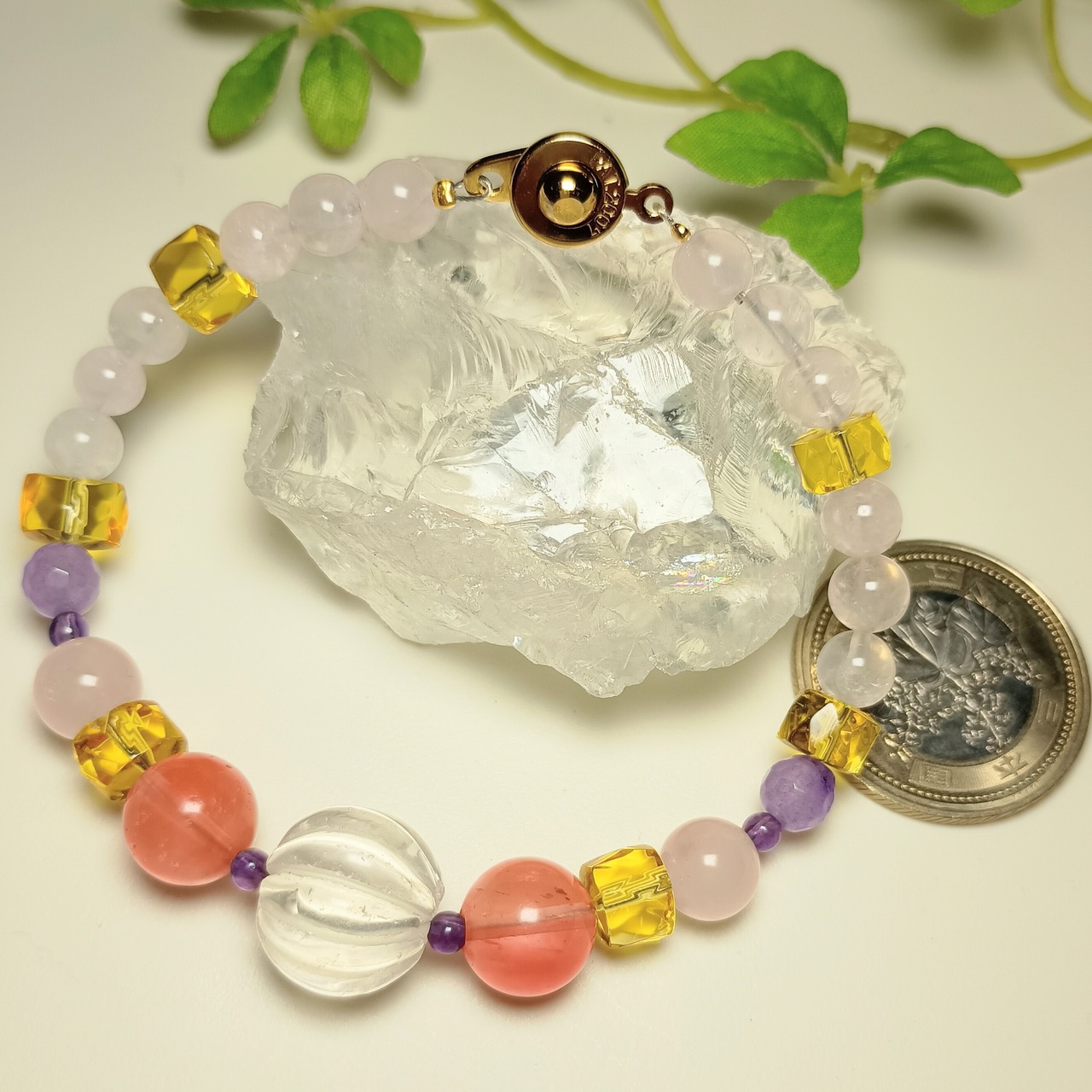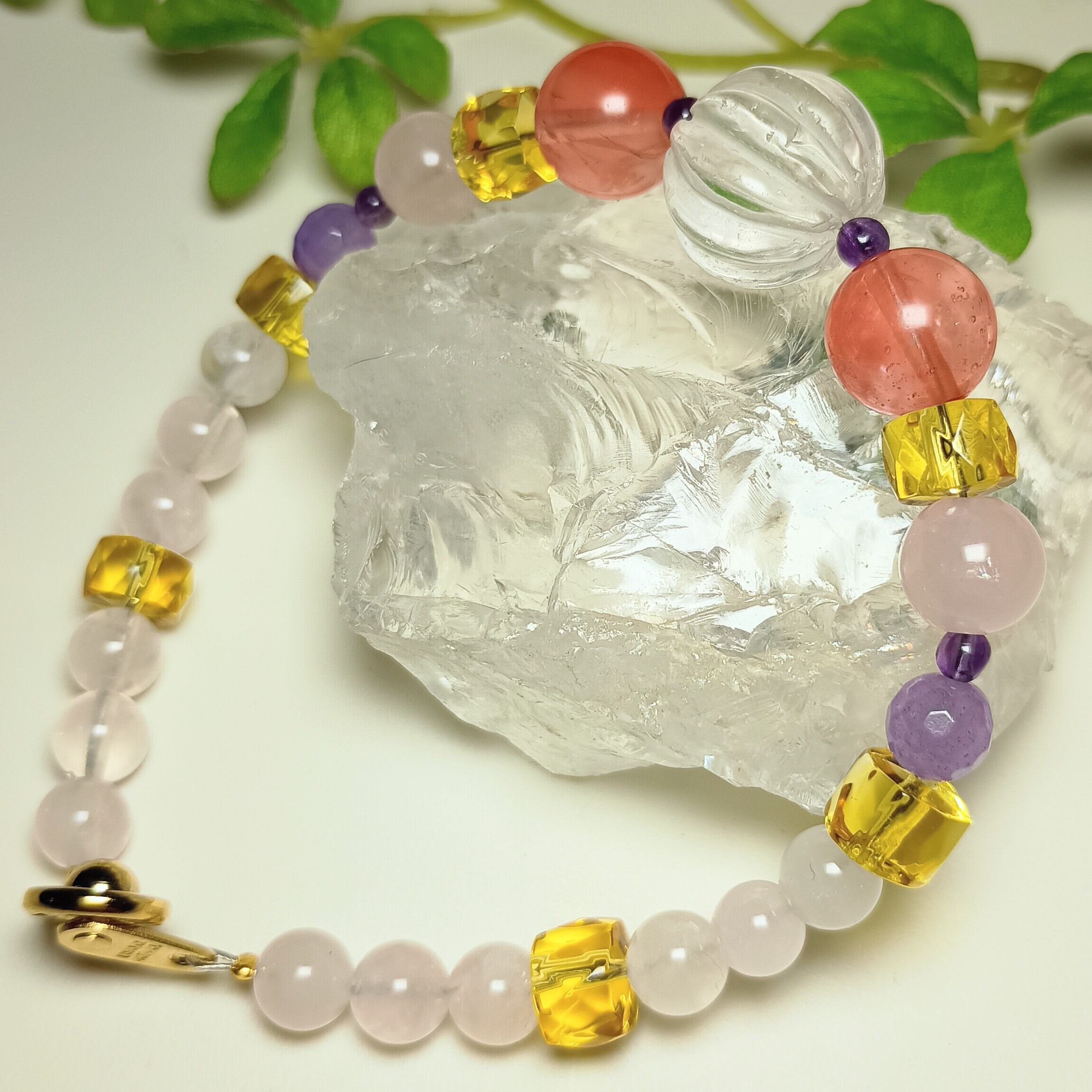 SARASパワーアップブレスレットは、ローズクォーツ、ルチルクオーツ、水晶、シトリンなどのパワーストーンが組み合わさった、幸運と愛のエネルギーを宿す特別なパワーアップアイテムです。このブレスレットを身に着けることで、金運や恋愛運の向上、精神安定、成功への力強いサポートを受けることができるでしょう。