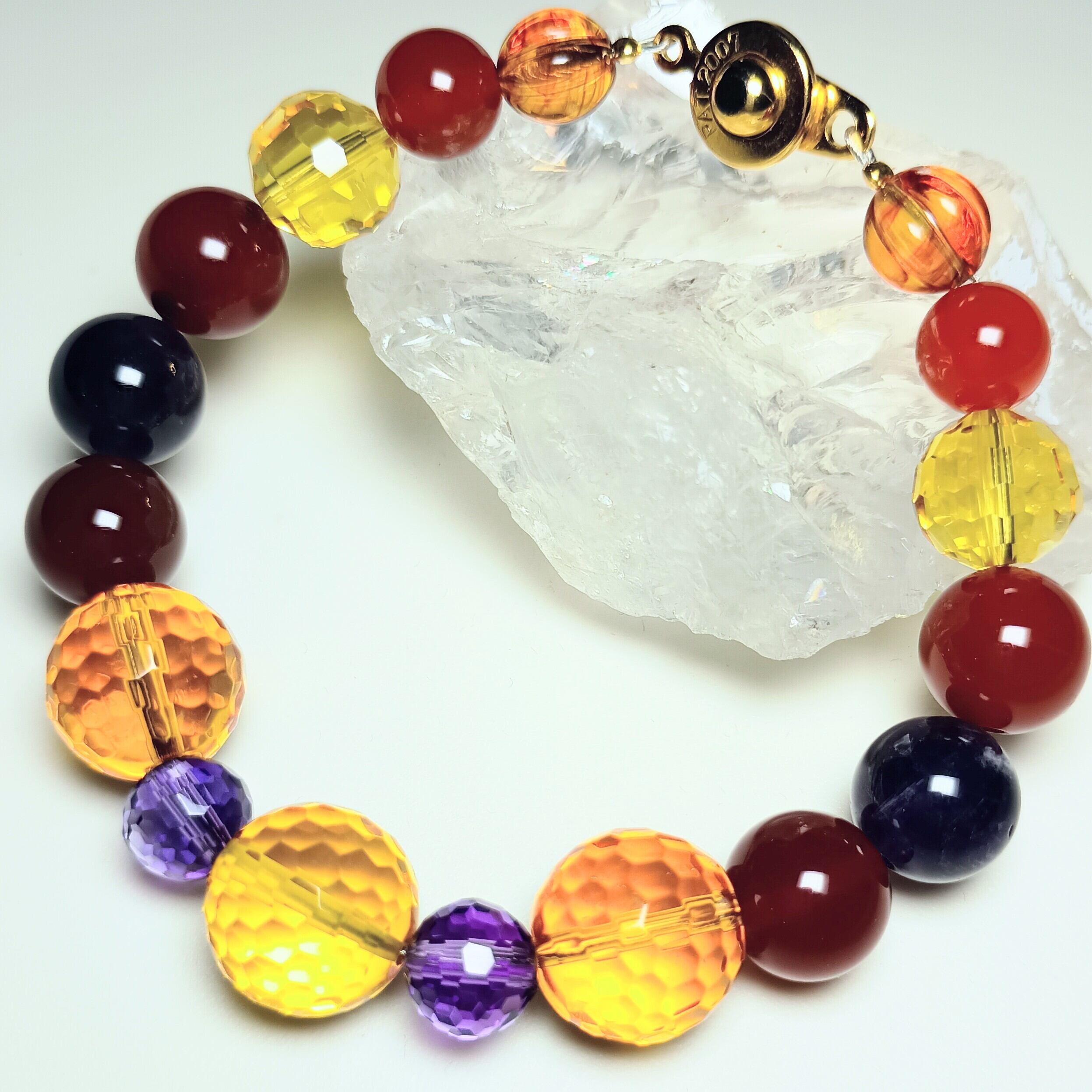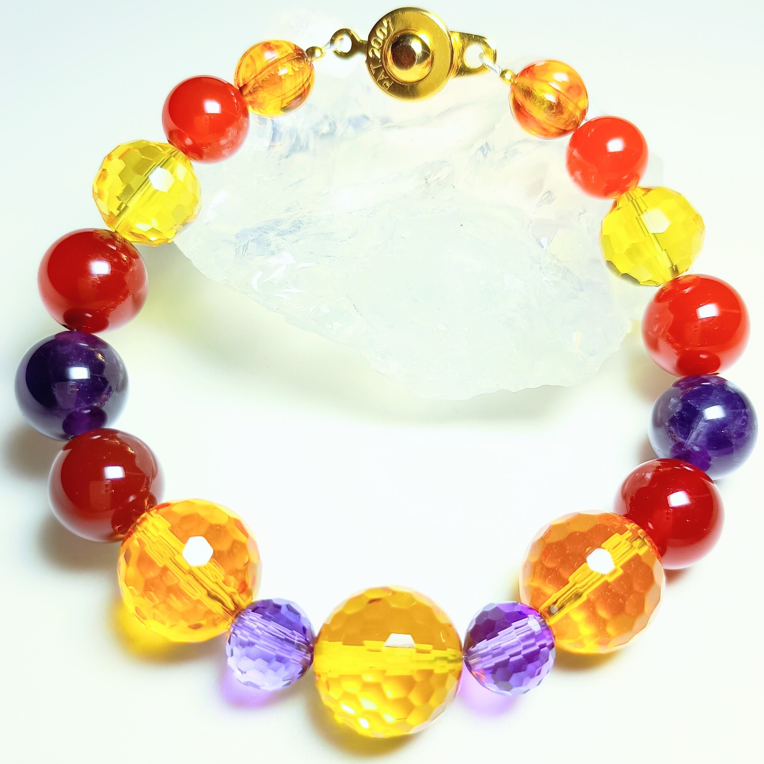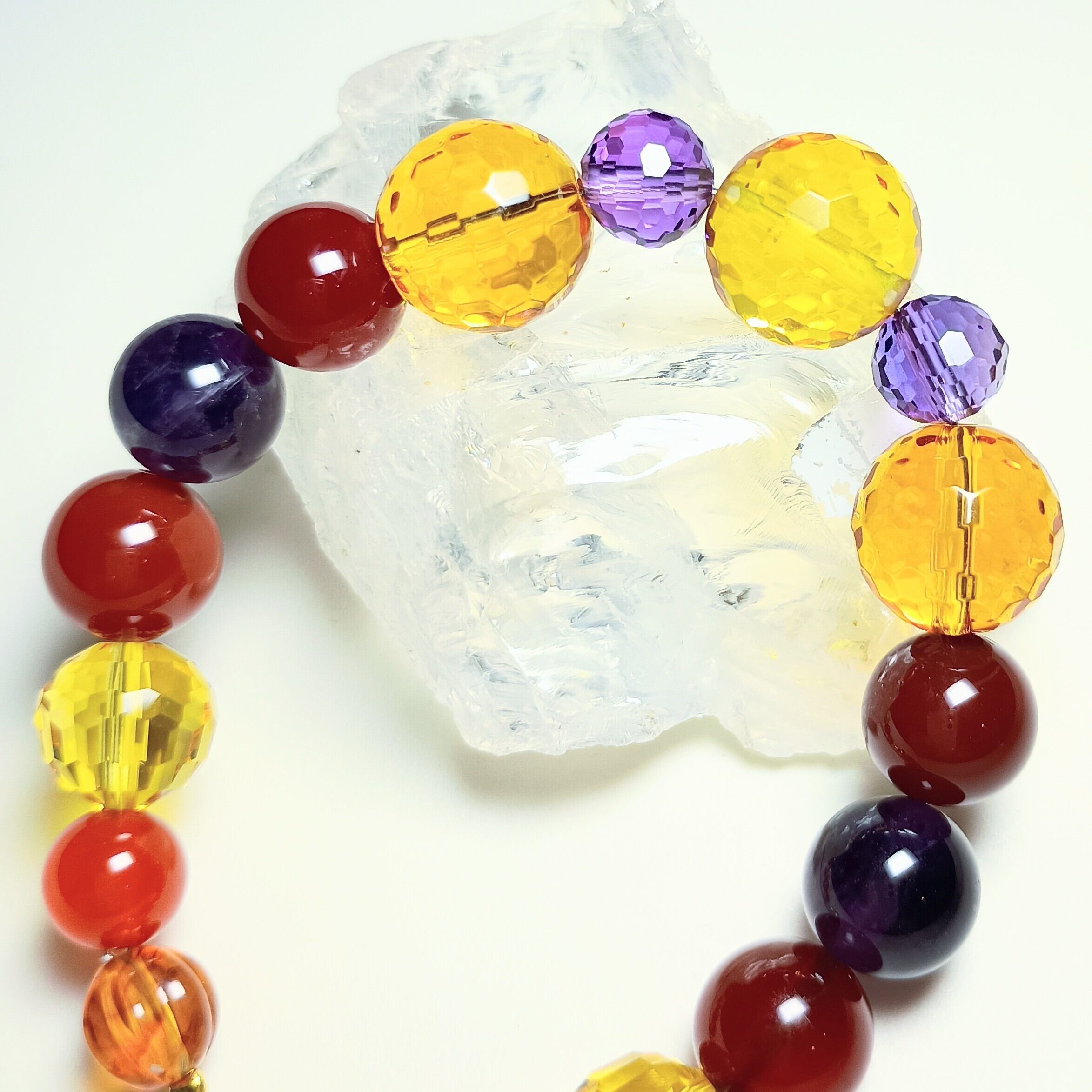 高貴な美しさが魅力的なシトリン、神秘的なアメジスト、そして情熱的なカーネリアンを組み合わせた「シトリン アメジスト カーネリアンブレスレット〜家庭運・成功・魔除け〜」は、家庭運を高め、成功を手に入れるための強力なサポートをしてくれる特別なアイテムです☆