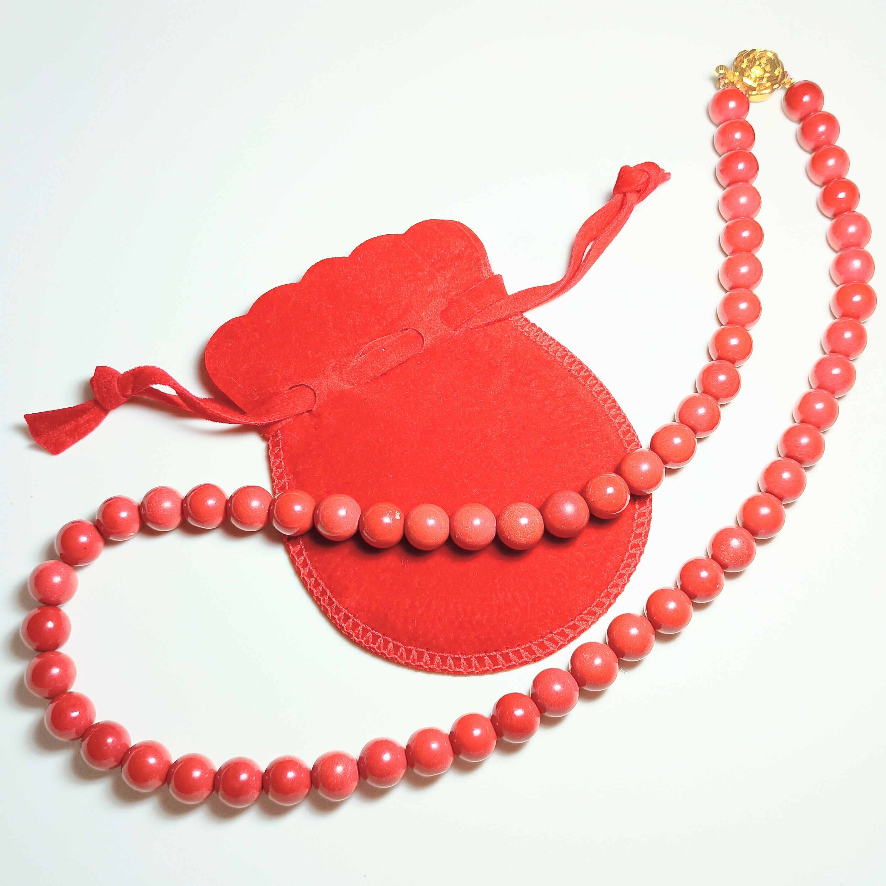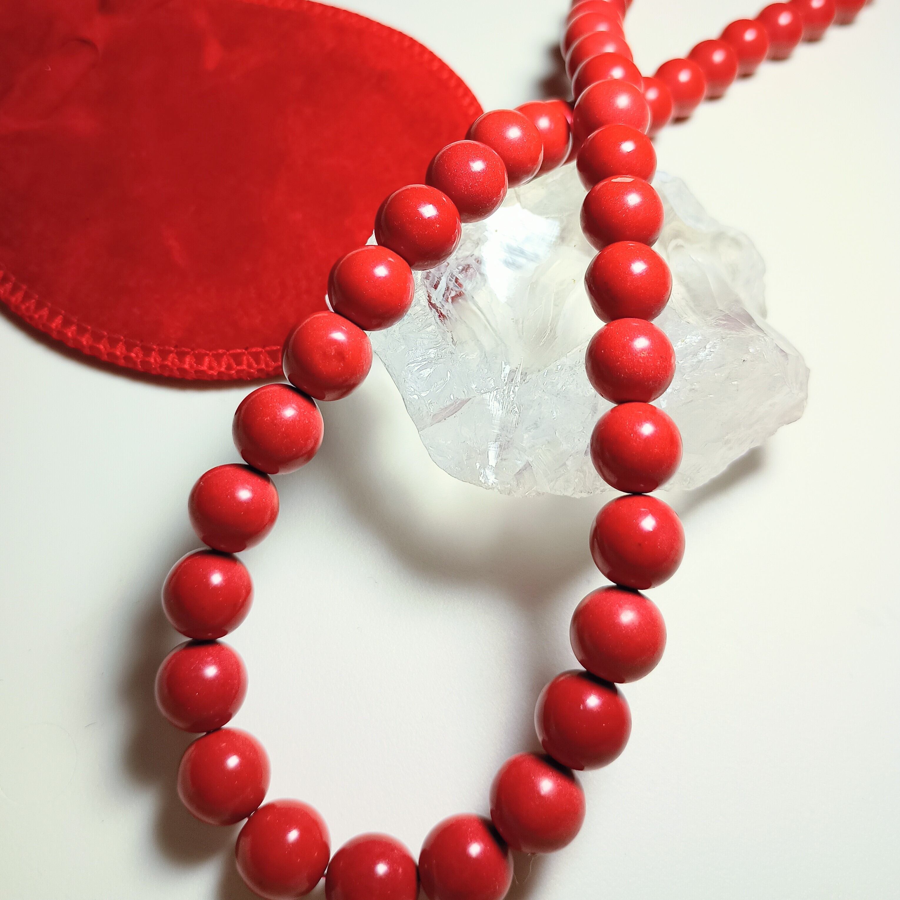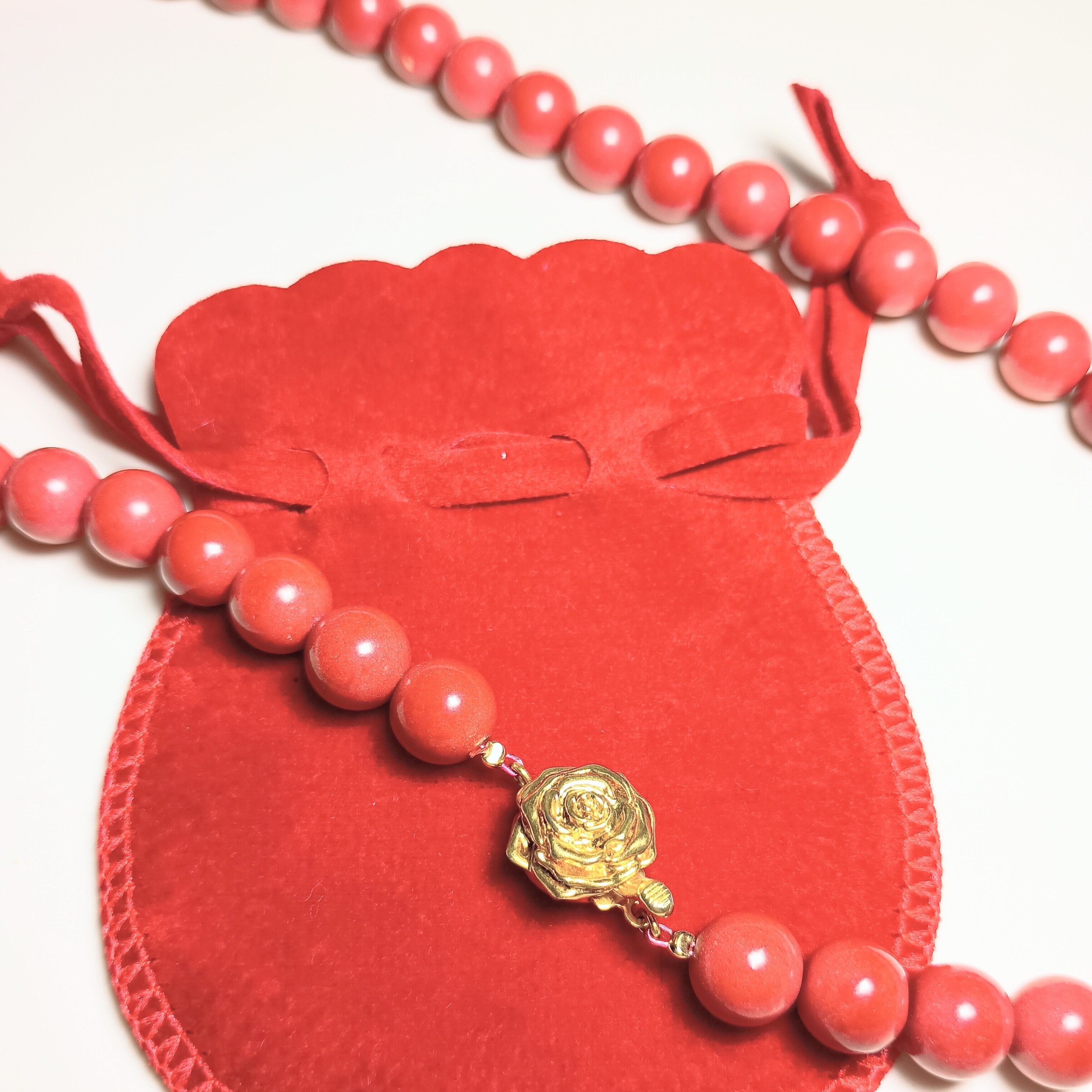 高貴な赤色が魅力の赤珊瑚を使用した「赤珊瑚ネックレスは8mm玉の練珊瑚を使用し、あなたの存在感を引き立てる特別なパワーアップアイテムです☆