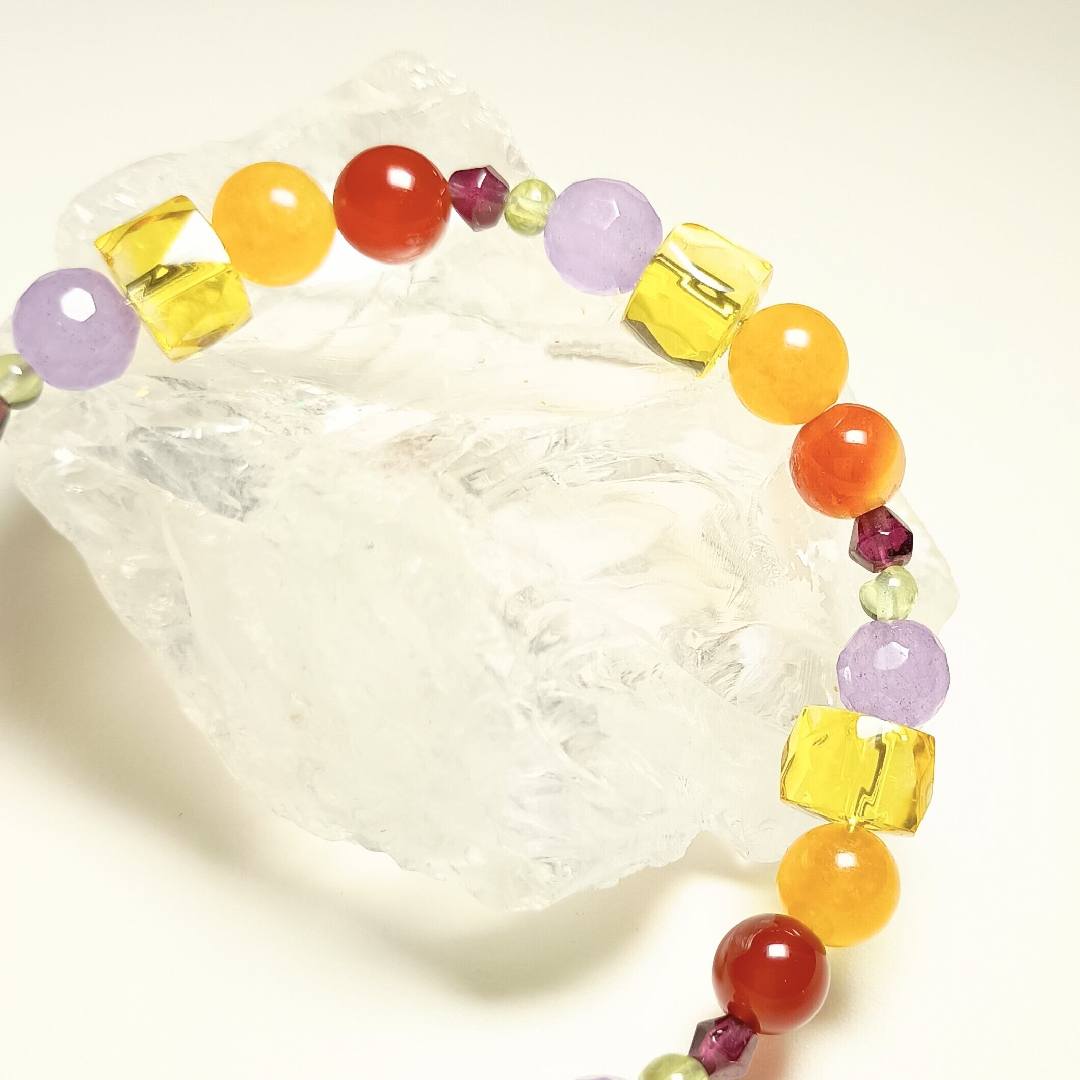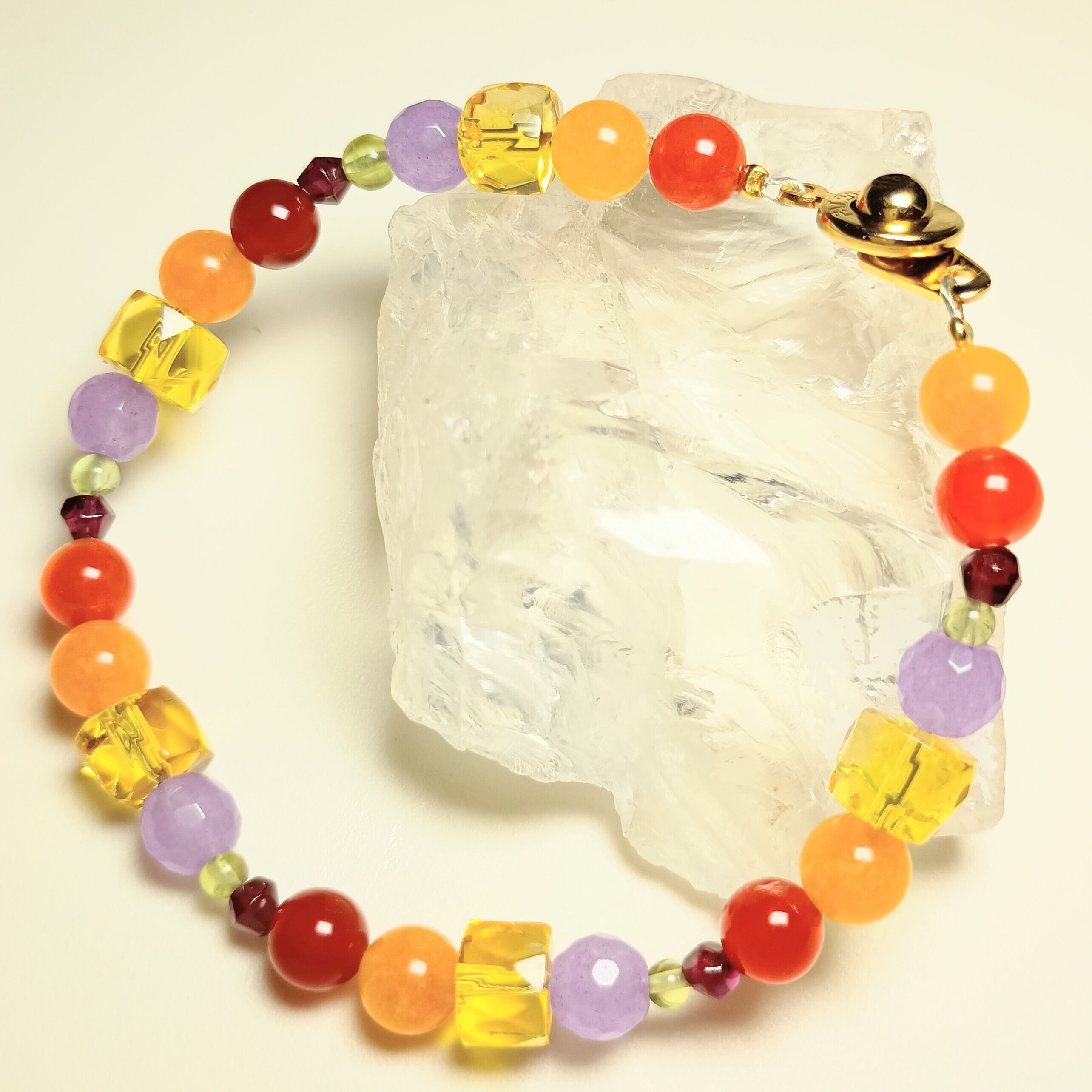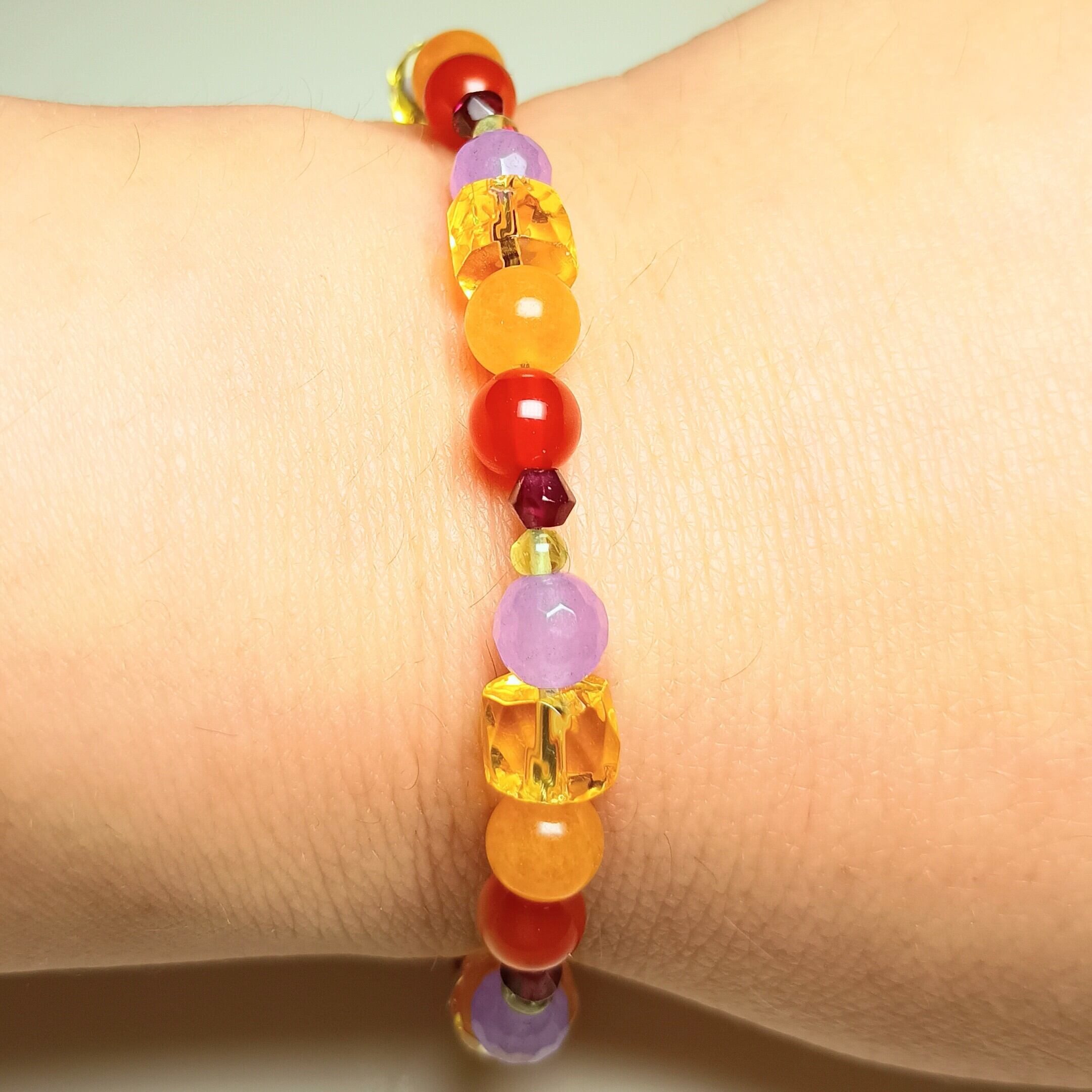 素晴らしい未来を「カーネリアン シトリン アメジスト アラゴナイト ガーネットブレスレット」と共に進めていきましょう。あなたの人生に家庭運と成功、魔除けの力がもたらされることを心から願っています。