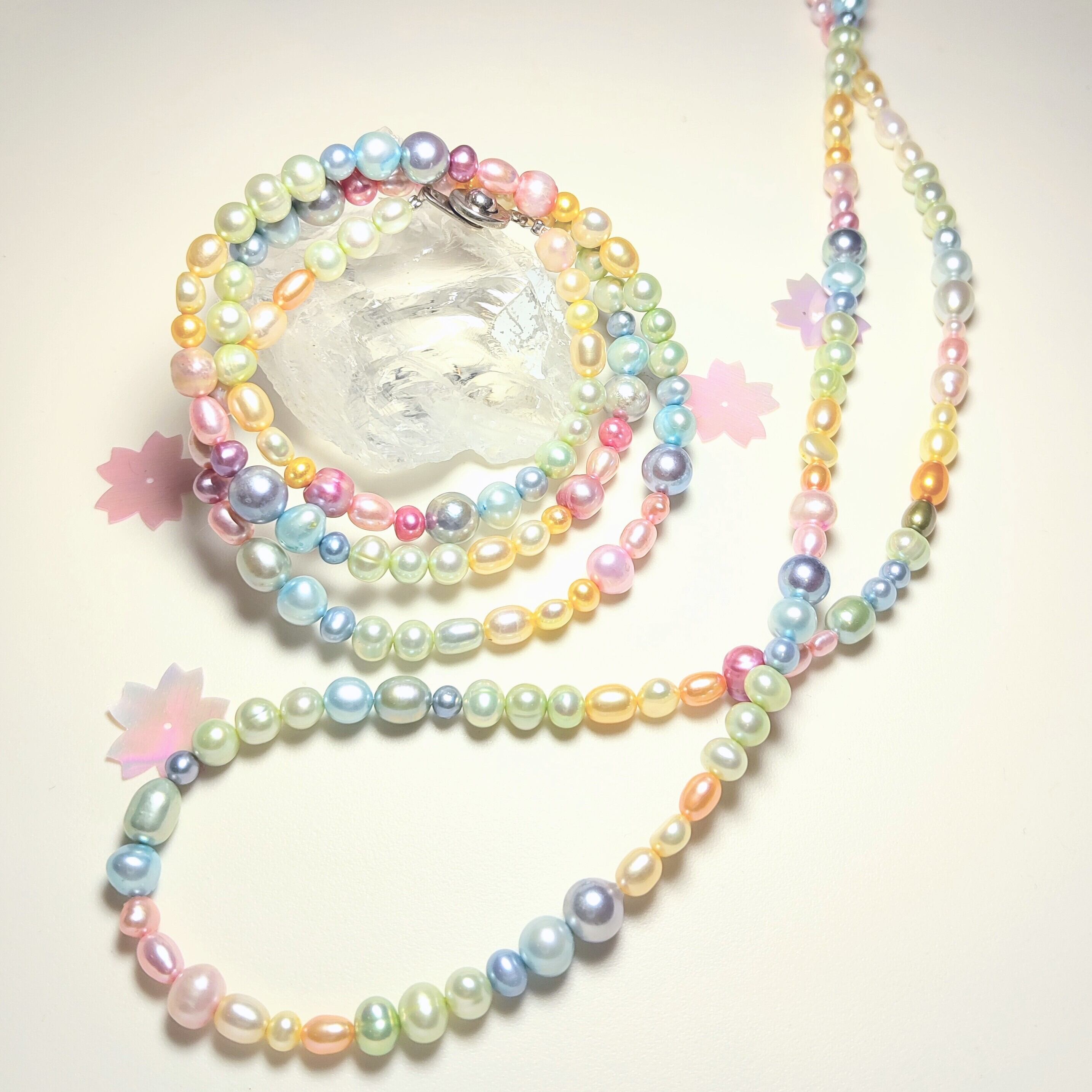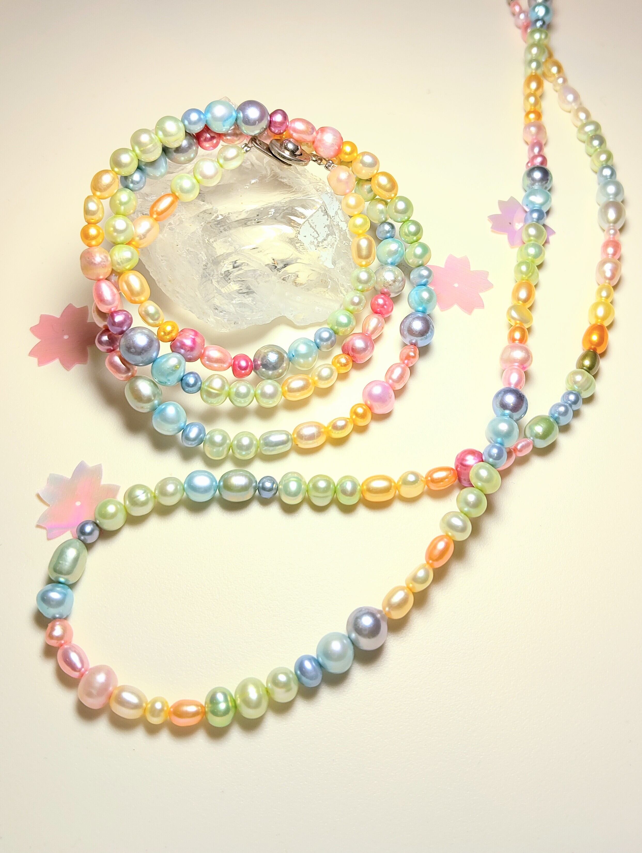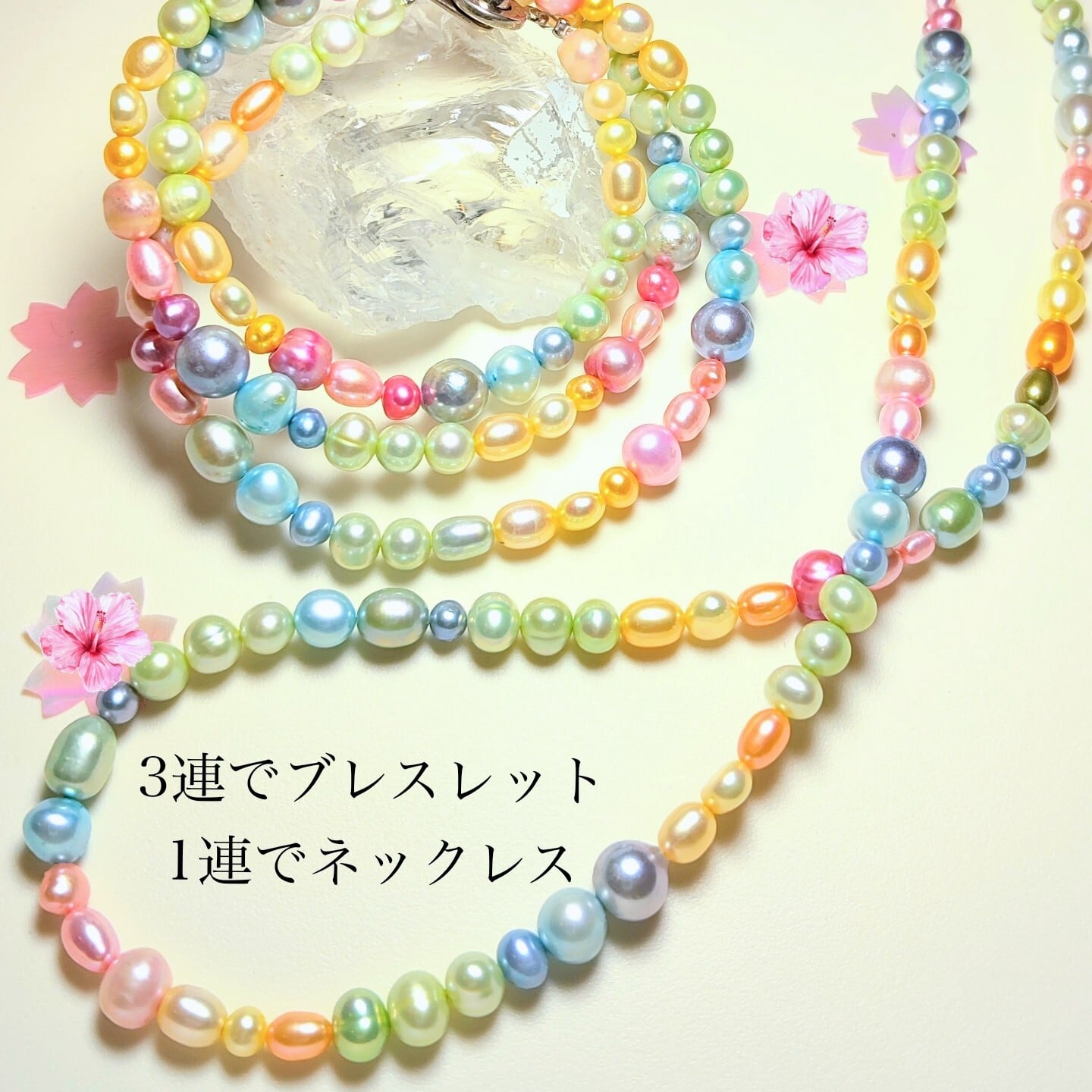 優雅に輝く、淡水レインボーパール2WAYネックレス&ブレスレットです。シンプルでありながら、あなたの胸元や手首を美しく彩ります♪