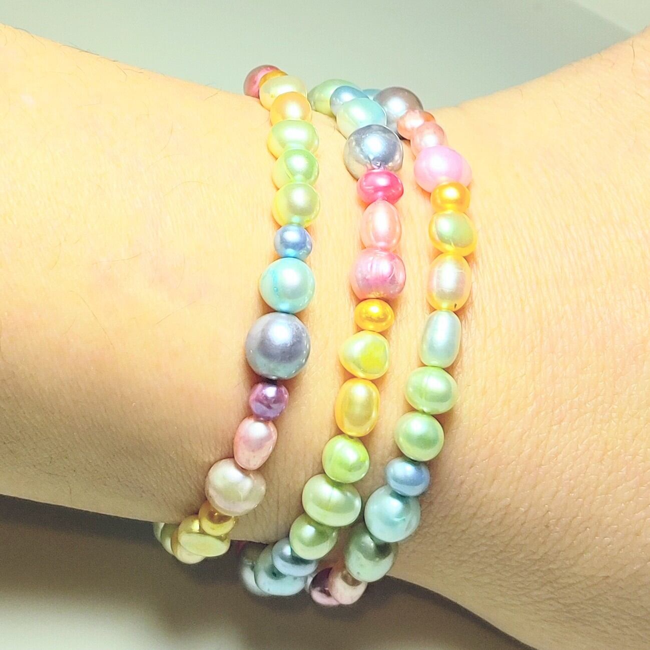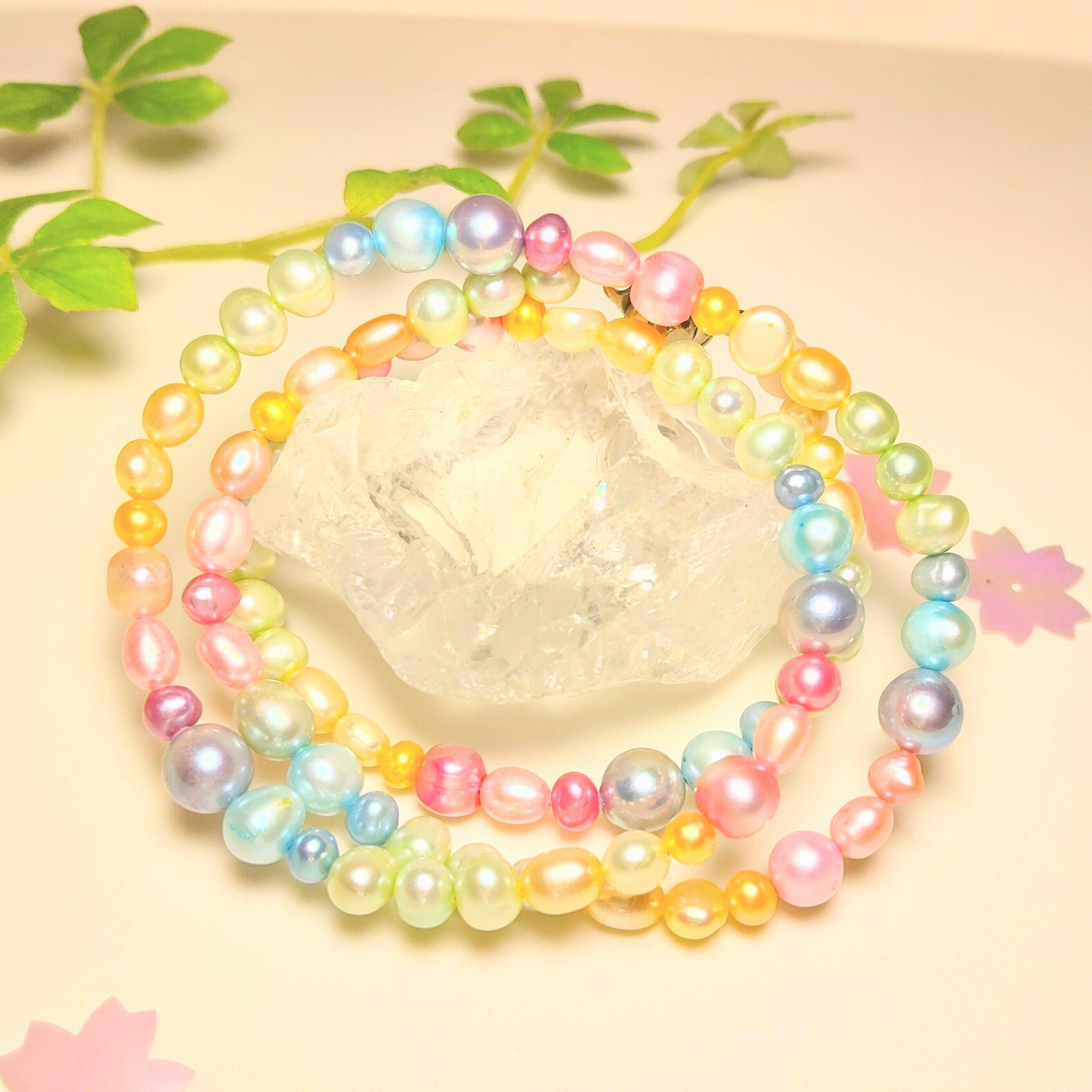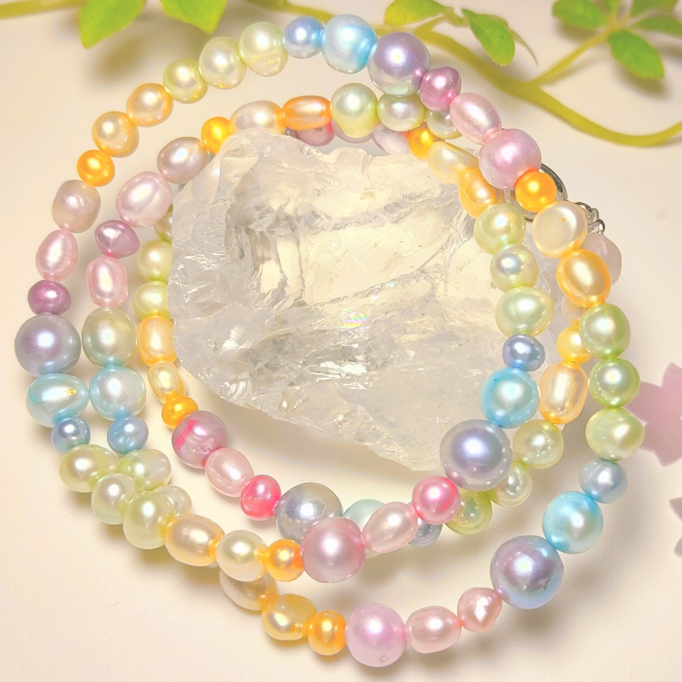 優雅に輝く、淡水レインボーパール2WAYネックレス&ブレスレットです。シンプルでありながら、あなたの胸元や手首を美しく彩ります♪